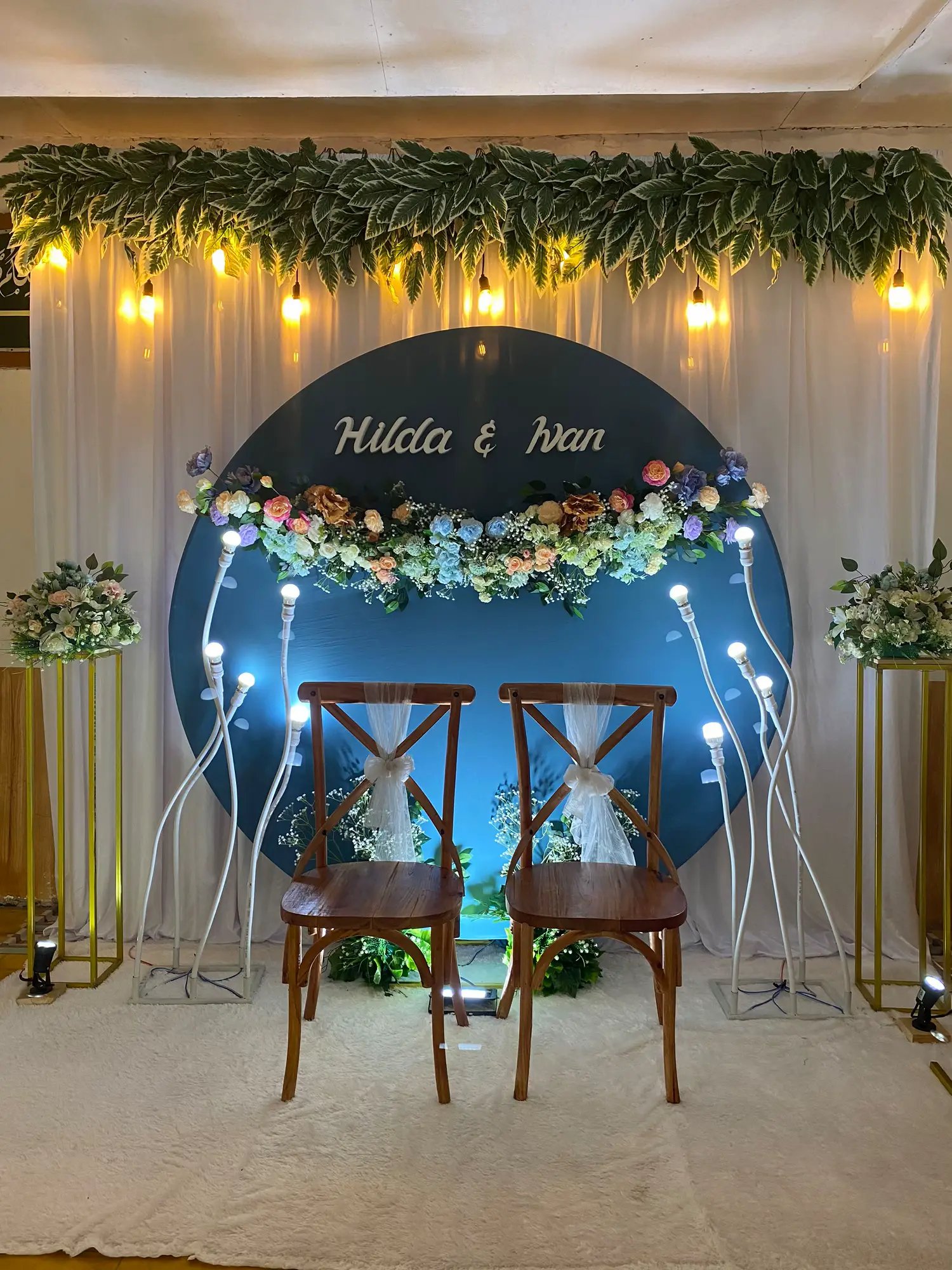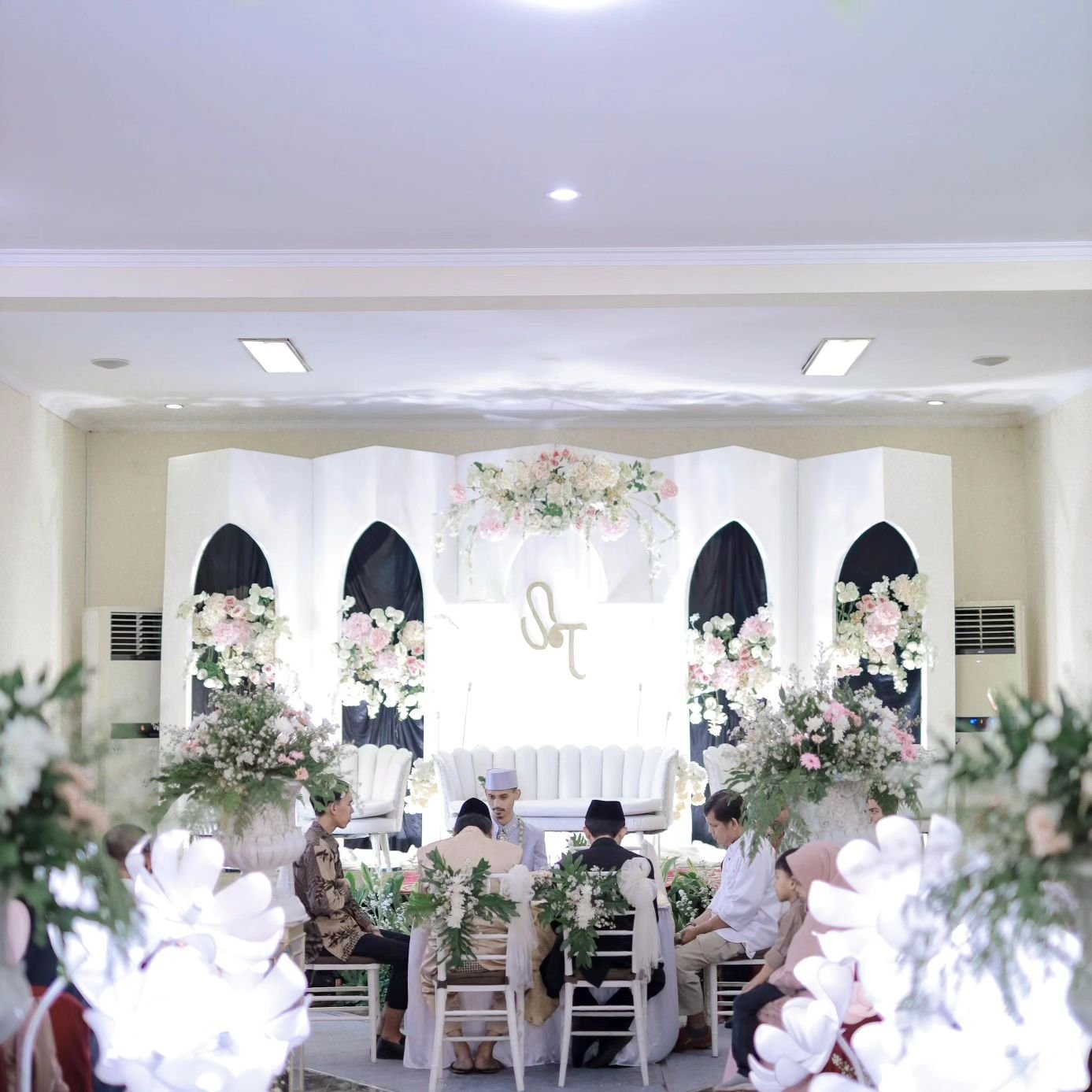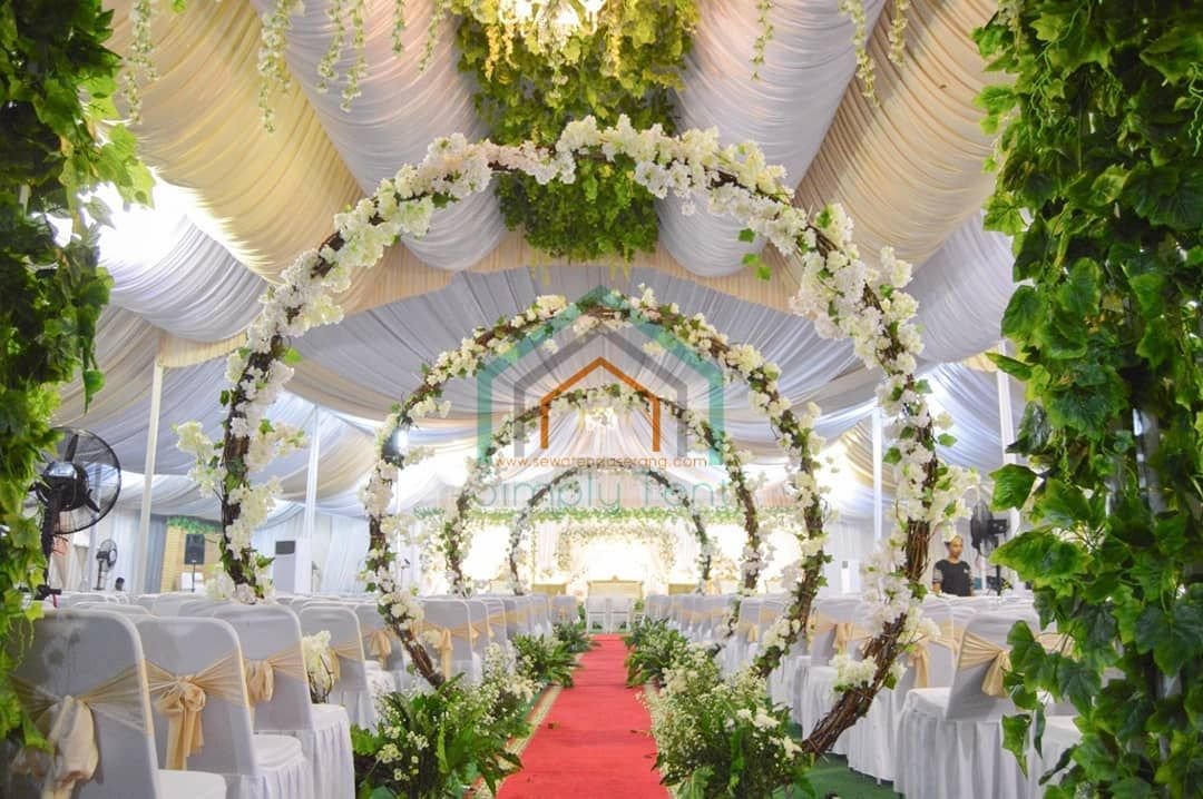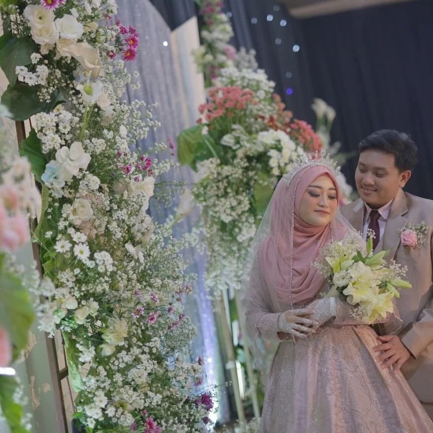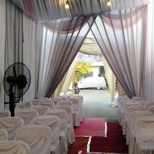 Dekor pelaminan 6m, Mini garden, Meja akadd, Standing dlower 4buah, Standing flower meja 1, Standing flower pelaminan 2, kursi 100, peralatan prasmanan, janurm sound system |